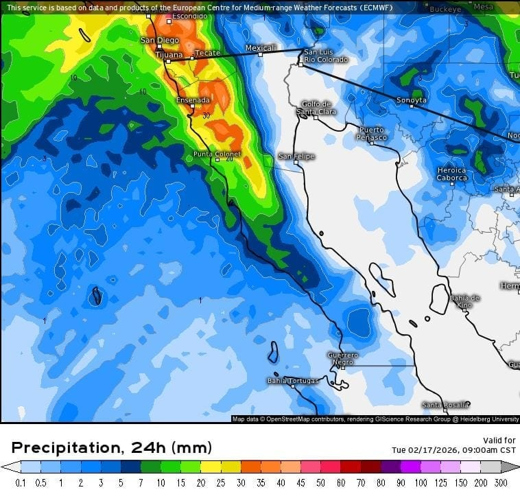 Alertan por lluvias fuertes y caída de nieve o aguanieve en Baja California