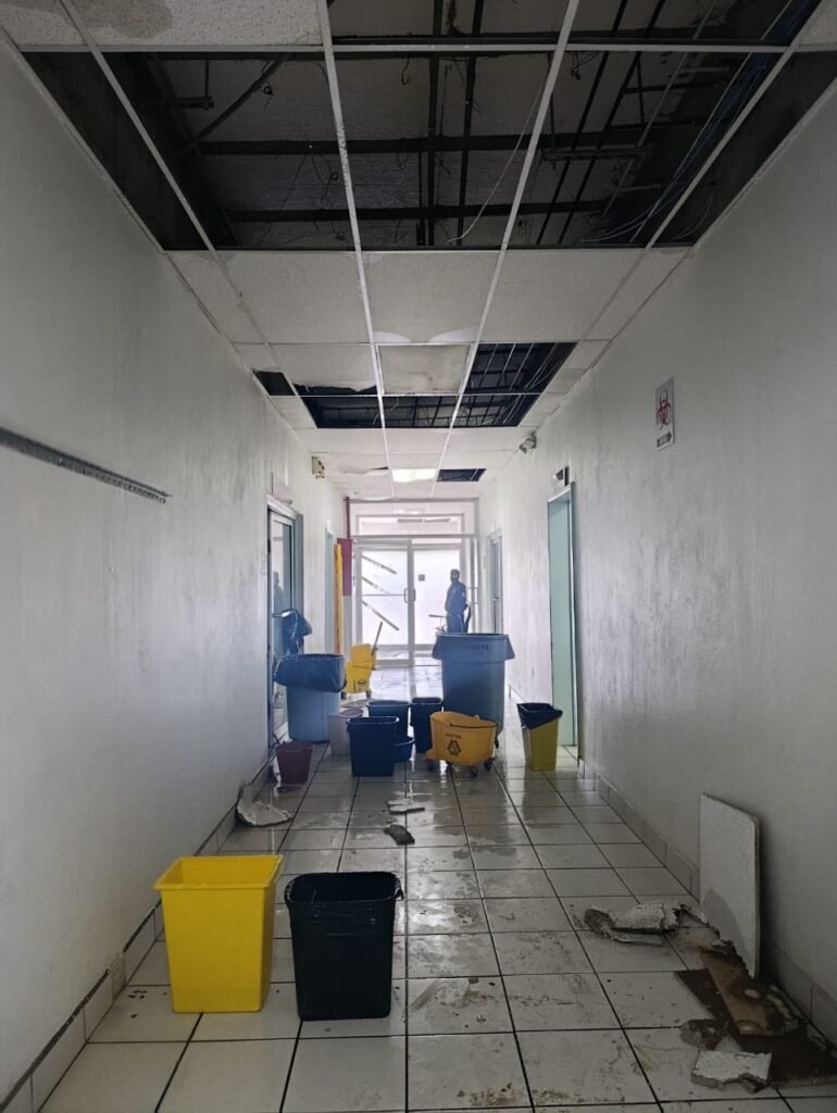 Tras las lluvias del pasado fin de semana, la dirección de Protección Civil de San Quintín realizó una inspección de la unidad médica y, al detectar afectaciones en estructura por el ingreso de agua, lo que puso en riesgo equipo, material, centros de carga, paredes y el falso plafón, la dependencia municipal procedió a la clausura del inmueble, ubicado en la delegación de Vicente Guerrero.