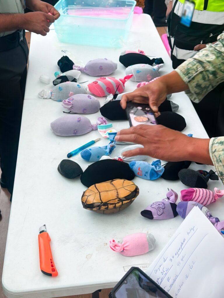 Un total de 774 de tortugas, de las cuales 4 murieron, fueron decomisadas en el aeropuerto de Tijuana durante un operativo en el que se localizó a los ejemplares envueltos en calcetines y colocados dentro de nueve cajas etiquetadas como “cosméticos”.