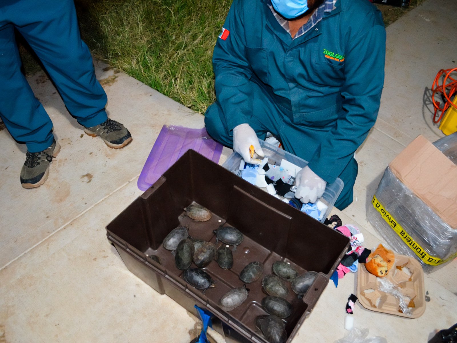 Inspectores de la oficina de Profepa en Baja California se trasladaron al sitio para coadyuvar con la Guardia Nacional. Ambos equipos realizaron el vaciado de las cajas con el fin de contar la totalidad de los ejemplares y verificar su estado físico.