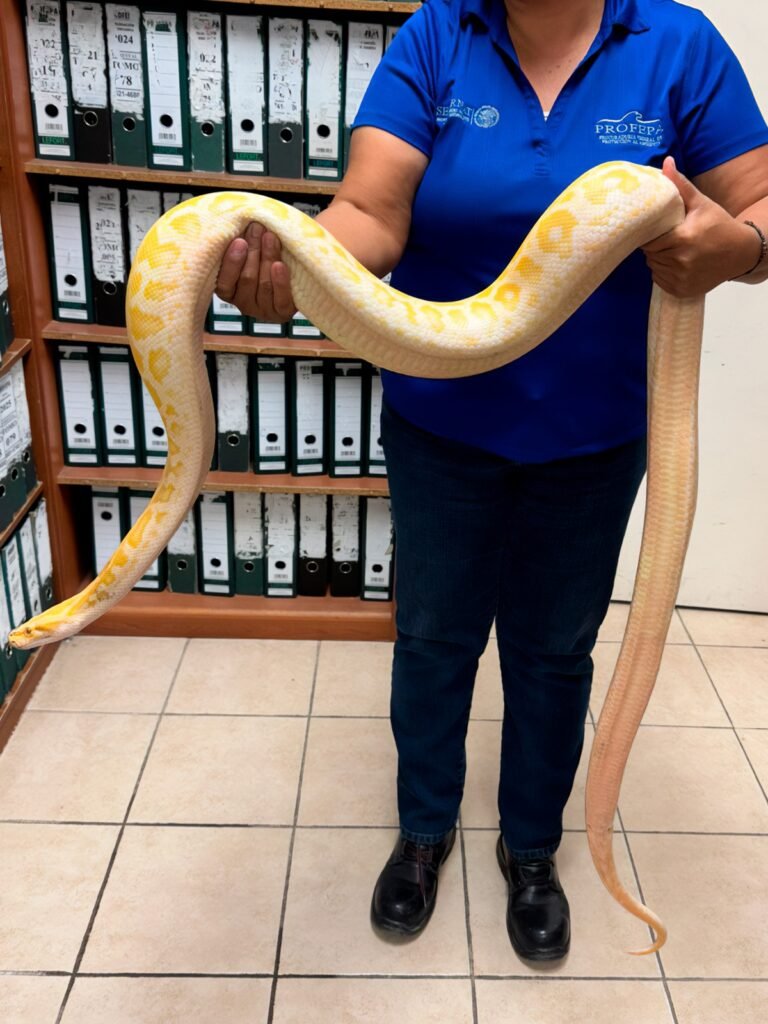 La Procuraduría Federal de Protección al Ambiente (Profepa) aseguró una pitón de Birmania en Ciudad Juárez, Chihuahua.
