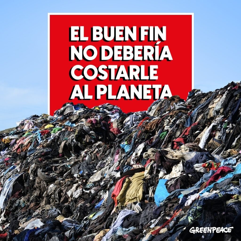El Buen Fin es una de las temporadas de contaminación más grandes del año, periodo durante el cual la producción, el transporte y los empaques plásticos se disparan, generando una huella ambiental enorme, señaló la organización ambientalista Greenpeace.