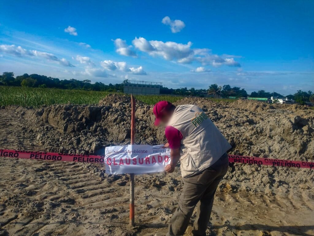 Clausuraron un predio ubicado en la colonia José María Pino Suárez, en el municipio de Centro, Tabasco, en donde se realizaba el relleno de un humedal sin contar con la autorización en materia de impacto ambiental emitida por la Secretaría de Medio Ambiente y Recursos Naturales (Semarnat).