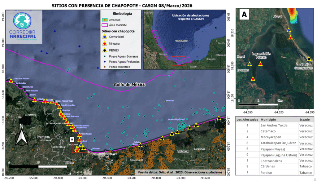 Desde los primeros arribos de chapopote en las playas del sur de Veracruz y norte de Tabasco, la Red Corredor Arrecifal del Golfo de México, junto con las comunidades locales, evidencia la gravedad de la situación.