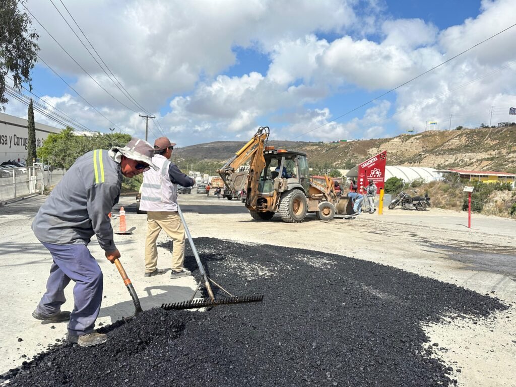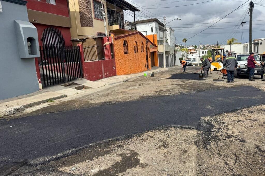 En Playas de Tijuana se ejecutaron diversas acciones, como bacheo con mezcla asfáltica caliente en Paseo Playas de Tijuana, sección Jardines, así como en calles de la colonia Miramar, abarcando 400 metros cuadrados.