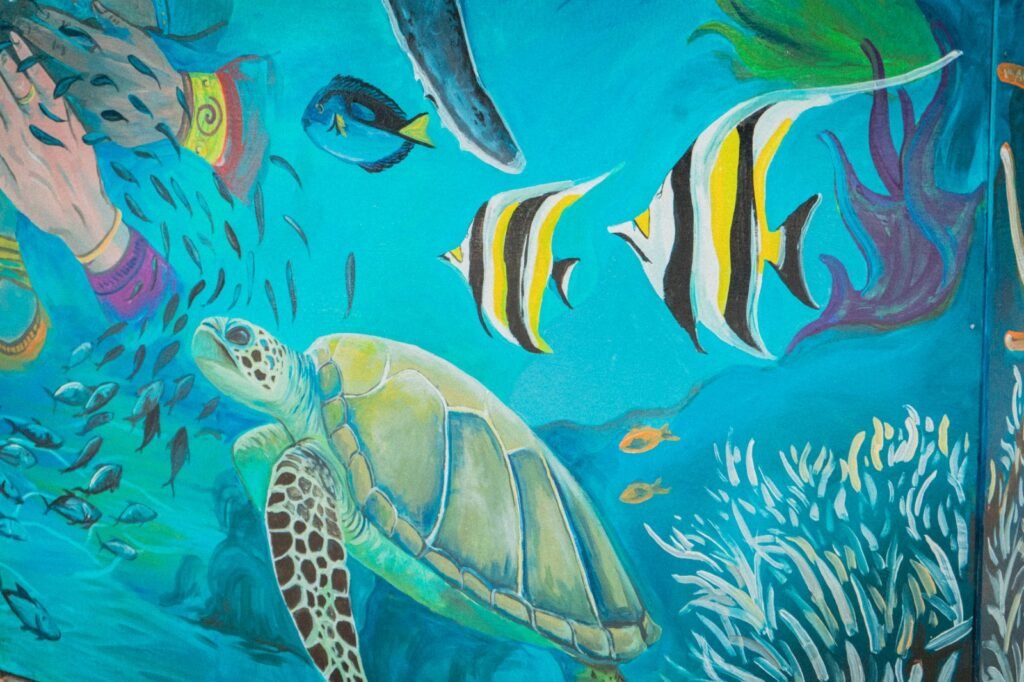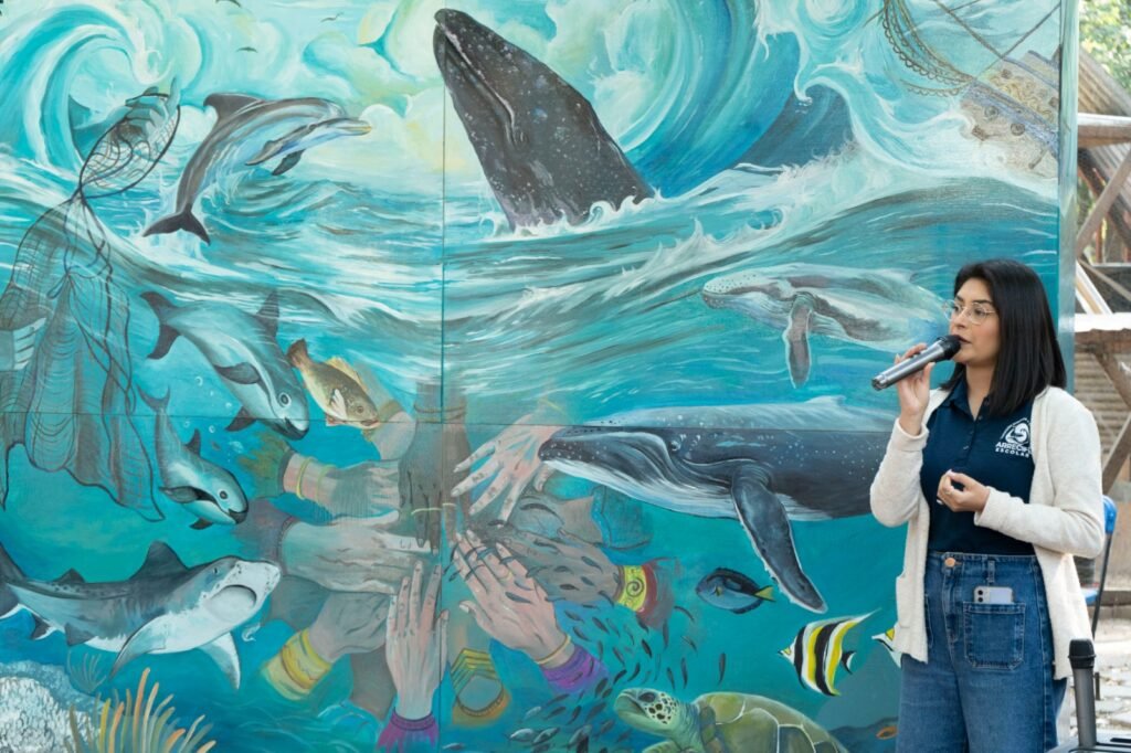 Este mural fue diseñado y pintado por ciudadanas y ciudadanos de a pie que quisieron plasmar su mirada sobre los océanos, sus deseos, su conexión con las especies marinas y también todo lo que implica el azul del agua. Se contó con la participación de voluntarias y voluntarios de Greenpeace México, personas de la sociedad civil, así como organizaciones aliadas como Arrecife Escolar, buscando plasmar mediante el arte la importancia de los océanos y el reflejo de nuestra responsabilidad como ciudadanía y la de los gobiernos y naciones del mundo, en su protección.