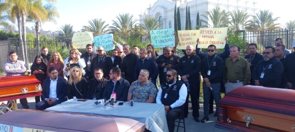 Representantes de 28 funerarias en Tijuana denunciaron prácticas amañadas por parte de agentes de la Fiscalía General del Estado de Baja California (FGEBC) para beneficiar a dos empresas funerarias en Tijuana, a quienes les otorgaron atribuciones de traslado y resguardo de cadáveres, situación que, dijeron los afectados, les generá un impacto en su negocio y lucra con el dolor de las familias.