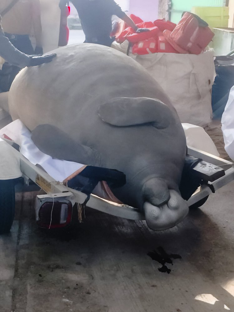 El manatí, de 500 kg de peso, fue localizado sin vida el jueves 9 de abril y fue trasladado por autoridades de la Profepa, la Subdirección de Protección Civil y la Policía Estatal de Coatzacoalcos, para la realización de la necropsia, que fue hecha por el MVZ Jaime Tacami Ortega.