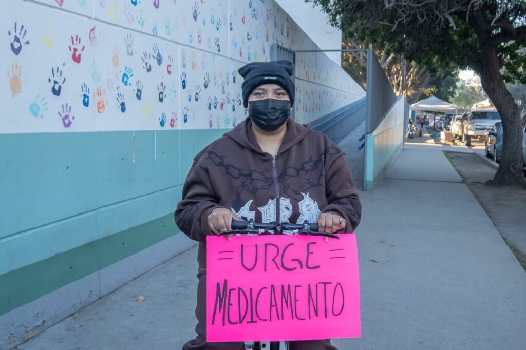 “Urge las quimios” y “Urge medicamento” se leía en las pancartas que portaban tanto pacientes como sus familiares que los acompañaron a la protesta que realizaron la mañana de este lunes afuera de la UNEME, ubicada a un costado del Hospital General de Tijuana.