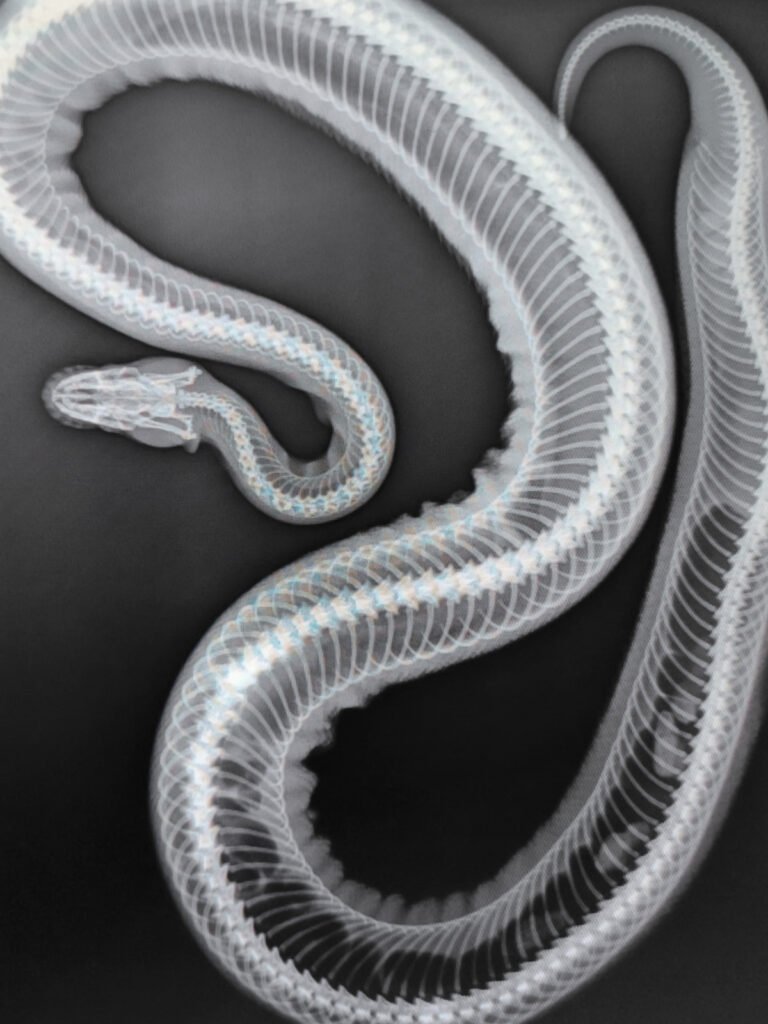 En el caso del segundo ejemplar de pitón bola, se detectó pulmonía severa y dificultad respiratoria, por lo que se le tomó una placa de rayos X en la que se observó que tiene líquido en pulmones, lo que indica que es una afección crónica.