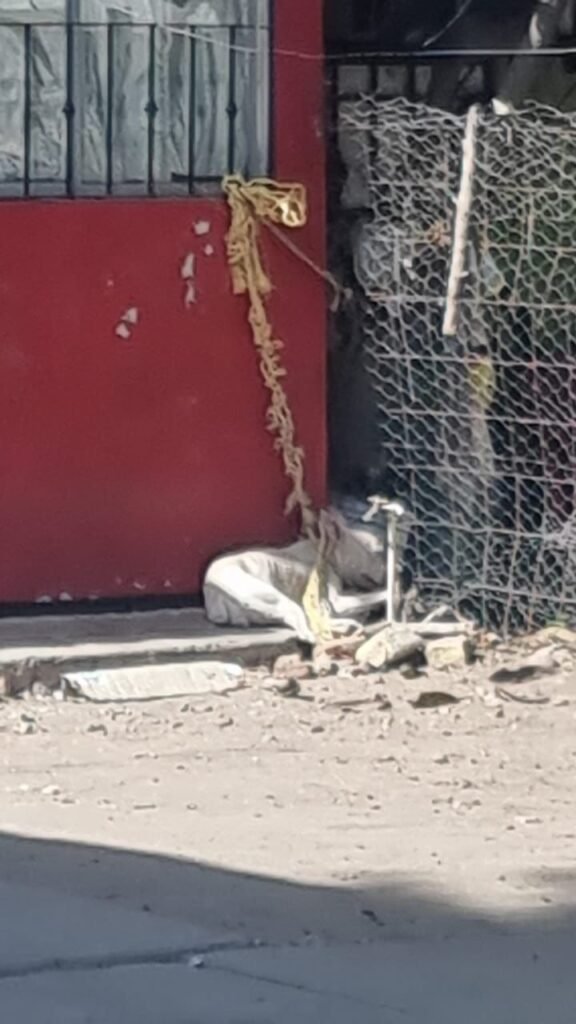 El animal se encontraba amarrado a una ventana desde hacía varios días, sin posibilidad de echarse, expuesto a condiciones extremas de sol y lluvia, sin acceso a agua ni protección, situación que representa una violación a las normas de bienestar animal.