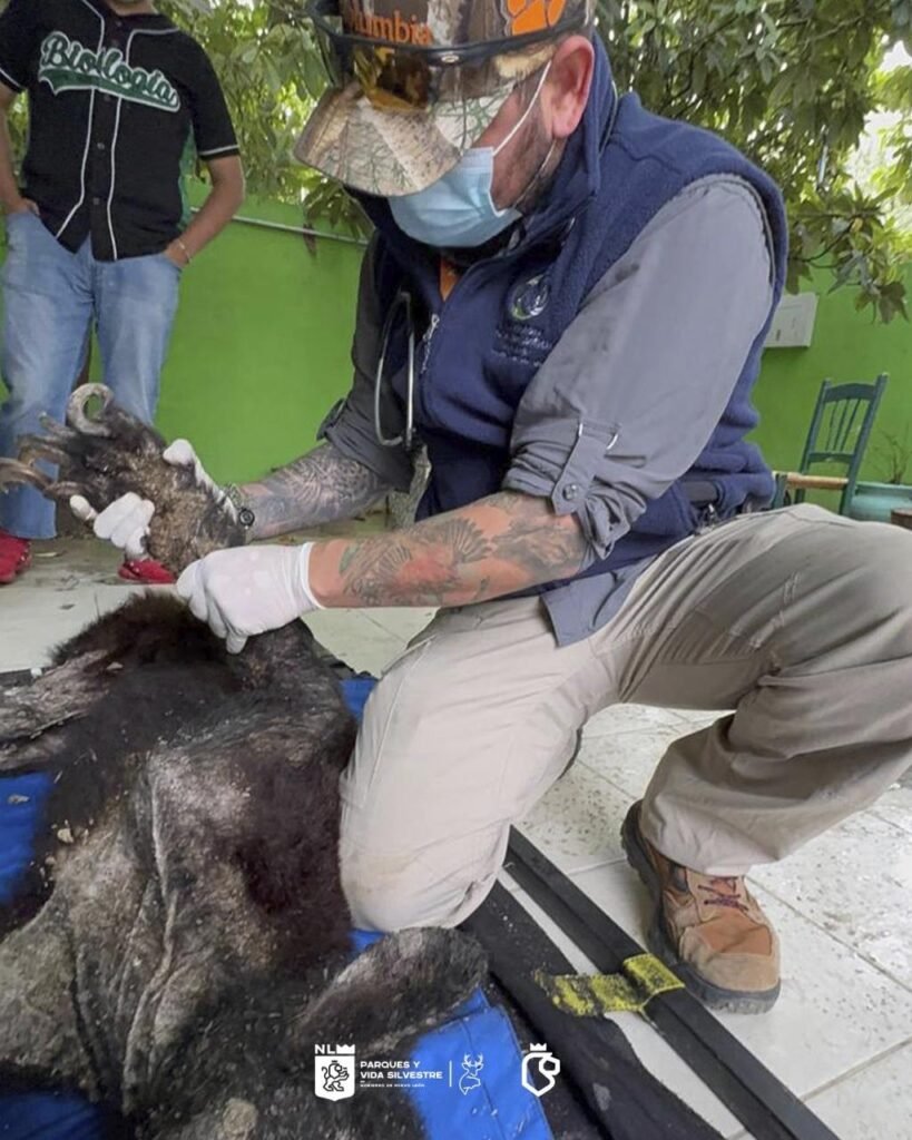 Gracias a una denuncia ciudadana el equipo veterinario de Parques y Vida Silvestre de Nuevo León acudió al sitio en el que se encontraba el oso y tomó muestras para determinar su condición y, aunque el pronóstico es reservado, seguimos brindando atención especializada.